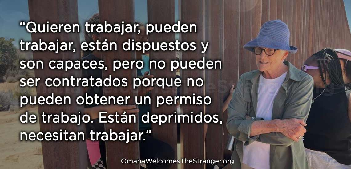 Y Erickson sigue en Omaha, Nebraska, trabajando en temas de justicia social y sigue viajando a la frontera siempre que puede. Pero ahora gran parte de su atención se centra en la paradoja de una nación que necesita 3 millones más de trabajadores para cubrir puestos vacantes, pero que no permite trabajar a los 3 millones de personas que esperan una audiencia de inmigración. La espera media para una audiencia es ahora de más de dos años.